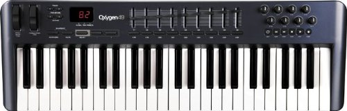 | The Oxygen 49 USB MIDI controller delivers next-generation functionality from M-Audio, the leading innovator in mobile music production technology. Oxygen 49 features eight assignable knobs and nine assignable sliders, plus dedicated transport and track select buttons. Direct Link mode automatically maps these controls to common DAW functions including transport, mixer, track pan and plug-in parameters. Built-in factory presets offer support for popular virtual instruments right out of the box, no complicated setup required. Velocity-sensitive keys and a sleek, compact design round out a portable keyboard that's perfect for both production and performance. No other MIDI controller in this price range has so much functionality while remaining easy to use. ...Read
